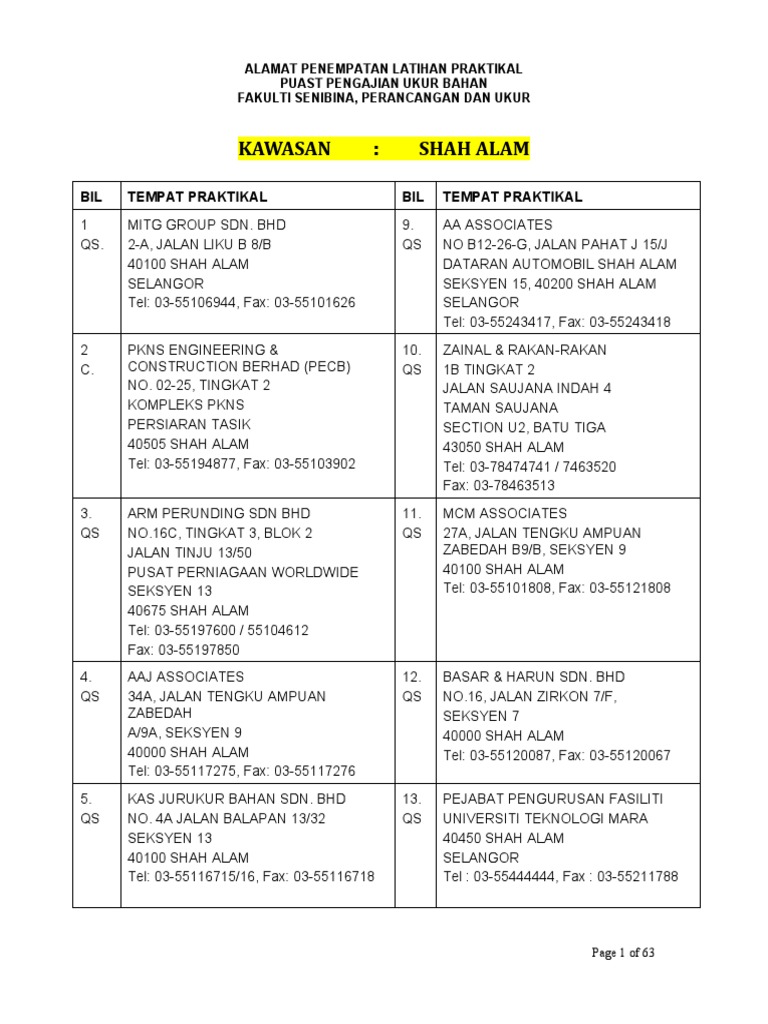 Alamat Penempatan Praktikal Updated Jun 2018 Pdf